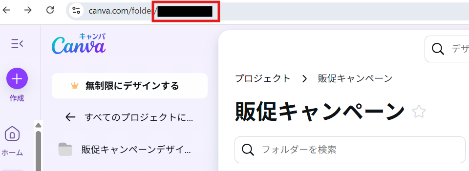 テキスト入力:https://www.canva.com/folder/ + アウトプット:フォルダID