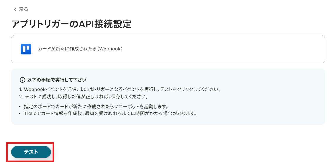 「カードが新たに作成されたら(Webhook)」をクリックします。