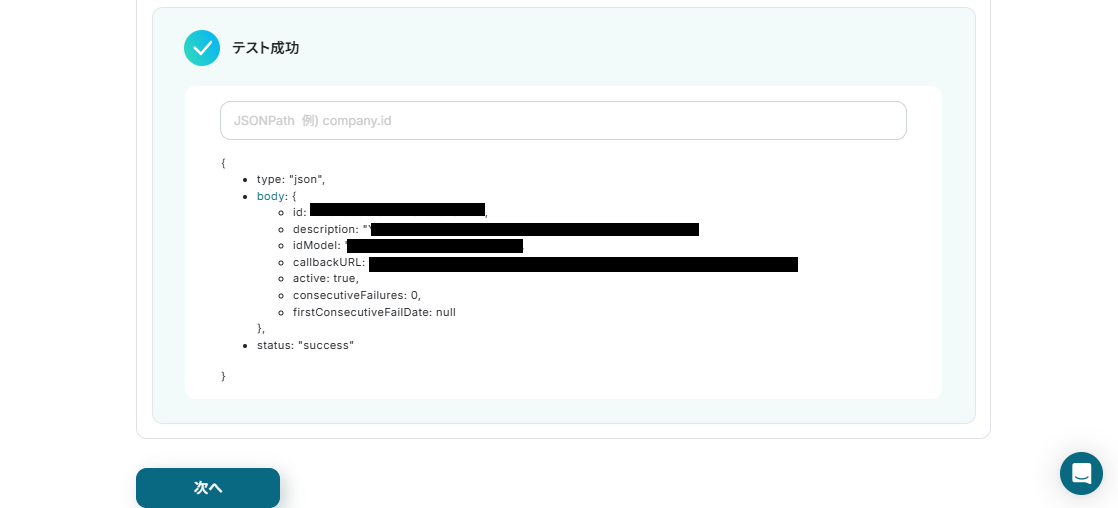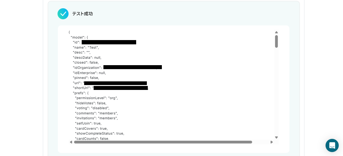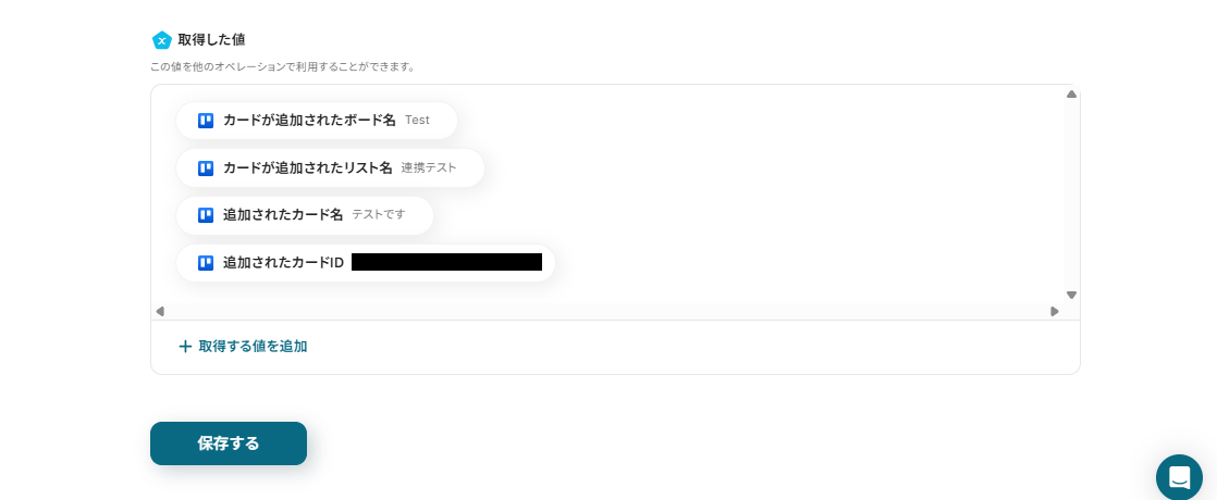 取得した値に、Trelloで作成したカードの情報が表示されるので、誤りが無いか確認してください。