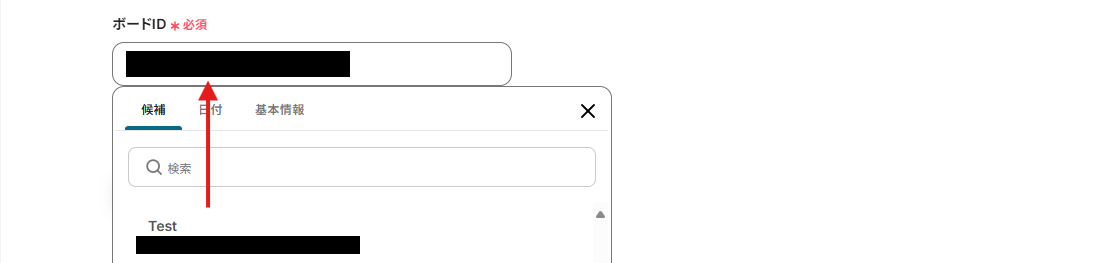 ボードIDは枠内をクリックし表示される候補から選択してください。