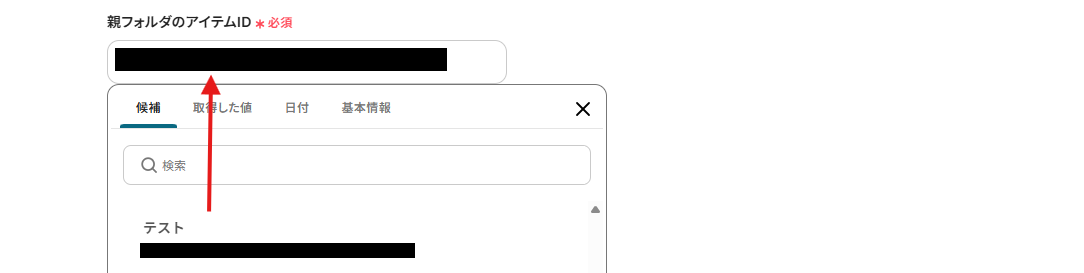 フォルダ名は、下記画面のように取得した値が設定されています。