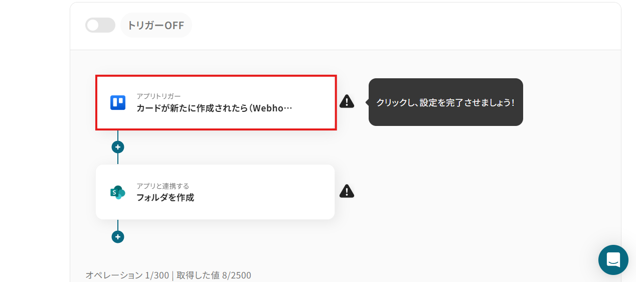 次のステップでは、Trelloに作成したカードのデータを引用し、Microsoft SharePointのフォルダを自動作成する設定を行います。