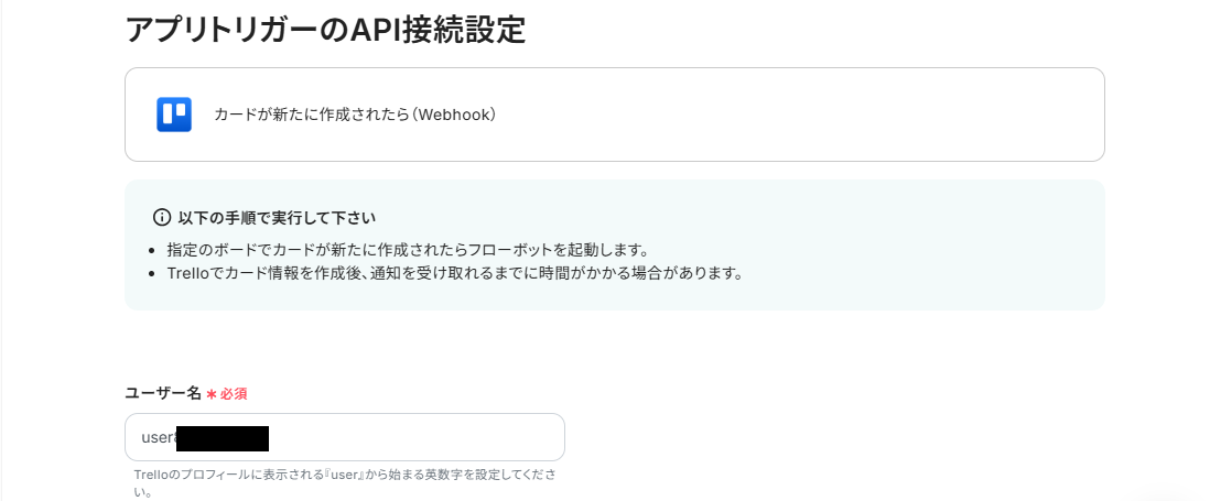 ステップ3:Trelloのカードが新たに作成されたら起動するトリガー設定