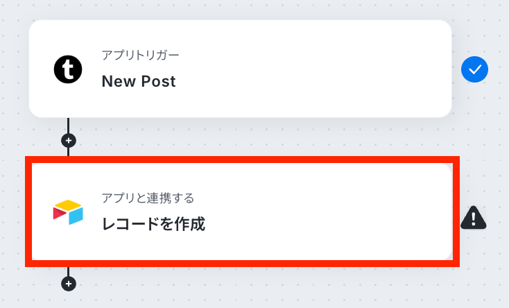 - 最後に、オペレーションでAirtableの「レコードを作成」アクションを設定し、Tumblrの投稿情報を連携する。