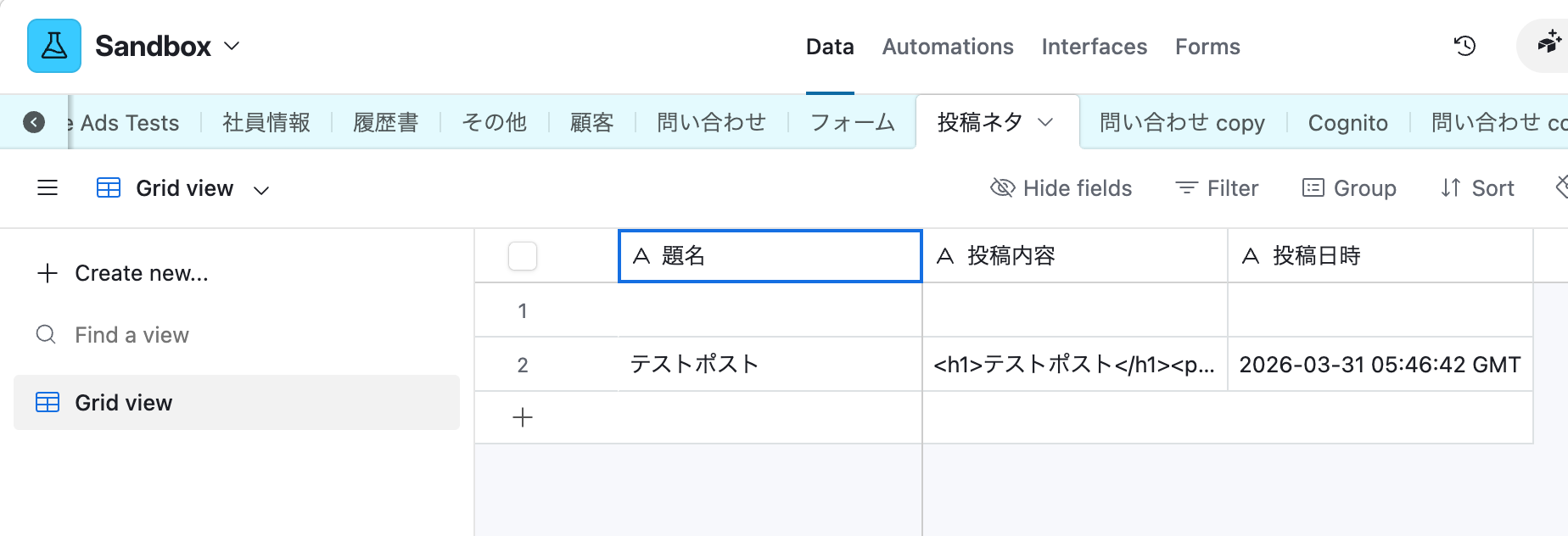 これで、Tumblrでポストが公開されると、自動的にAirtableでレコードが作成されるようになります!