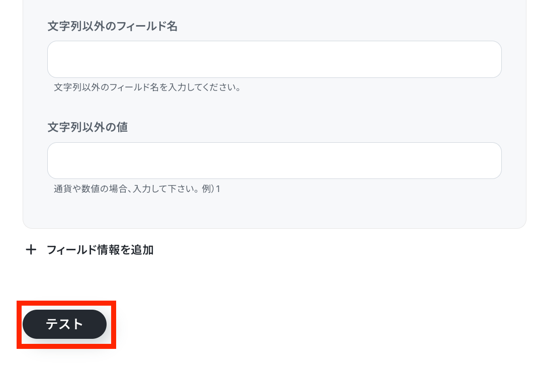 その他のフィールド情報の設定も同様に行い、全ての設定ができたらテストを実行しましょう!