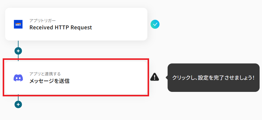 このワークフローを活用すれば、Typebotで特定のHTTPリクエストを受信した際に、自動でDiscordの指定チャンネルへメッセージを送信できます。