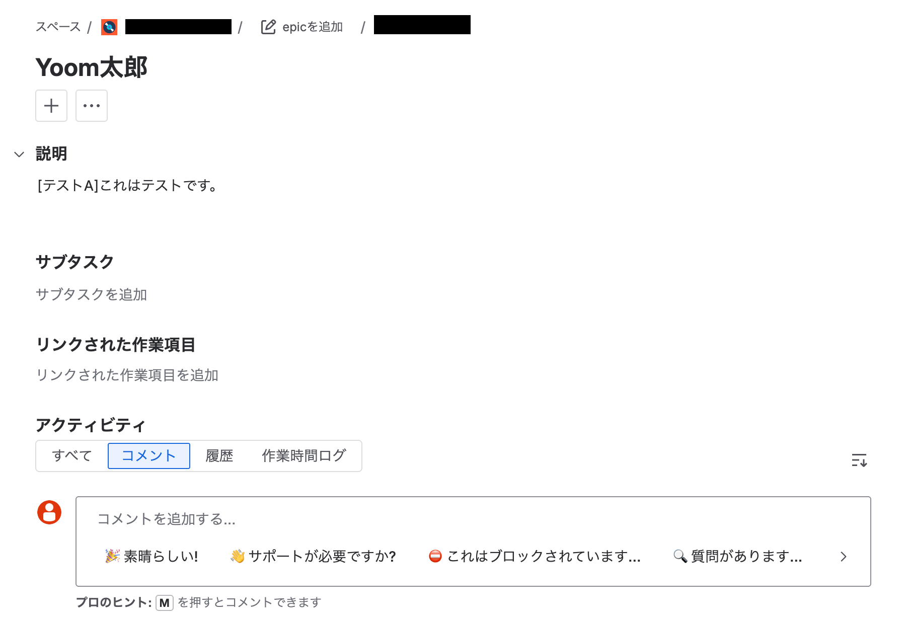 テスト成功で新規の課題が作成されています!