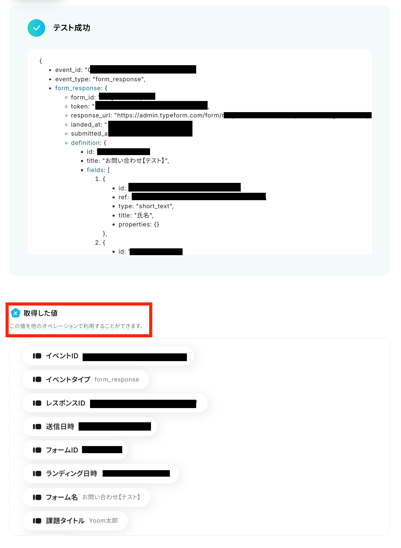 テスト成功で、取得した値が取得されます。