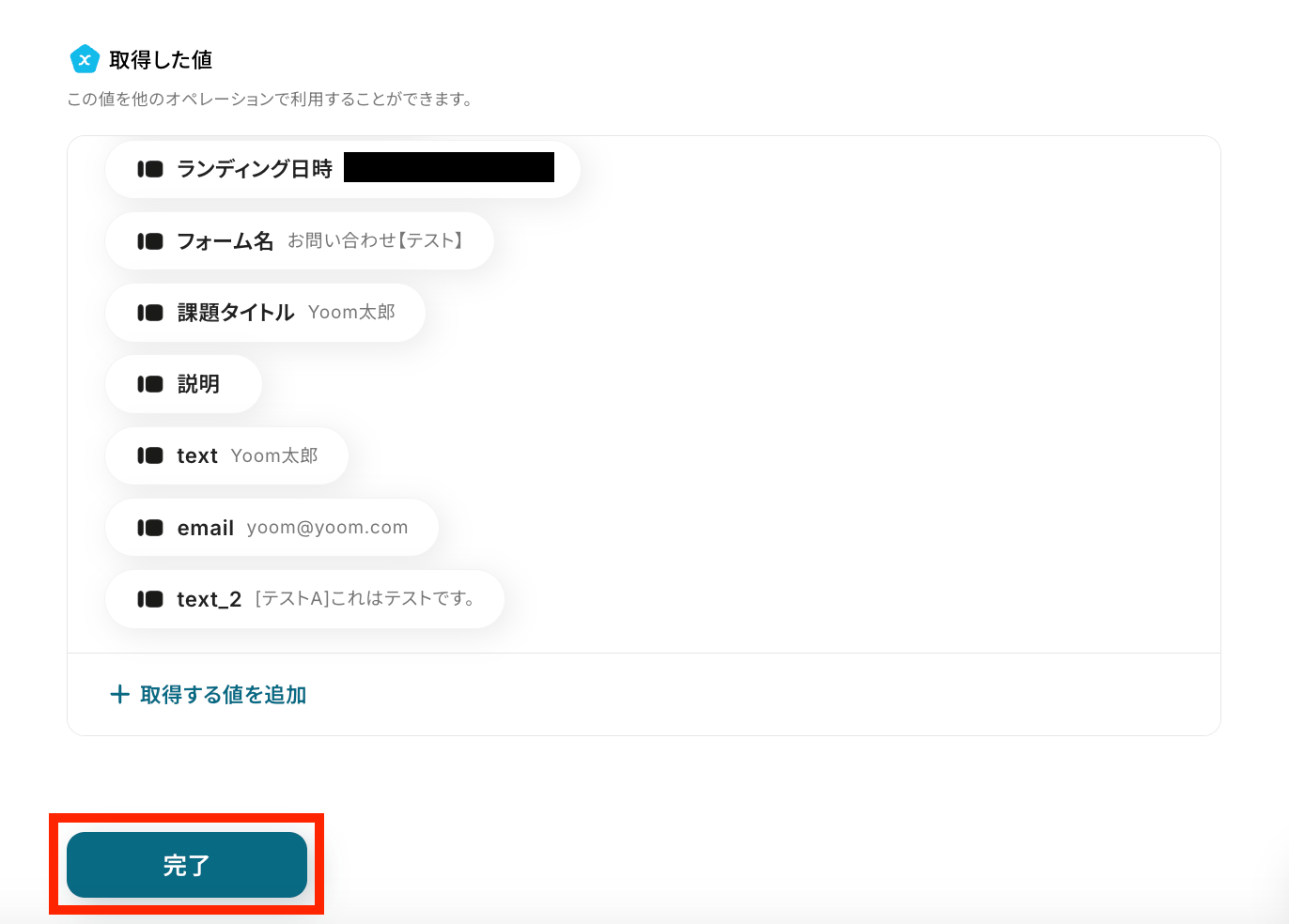 最後に、Yoomの設定画面で完了ボタンをクリックして設定を保存しましょう。