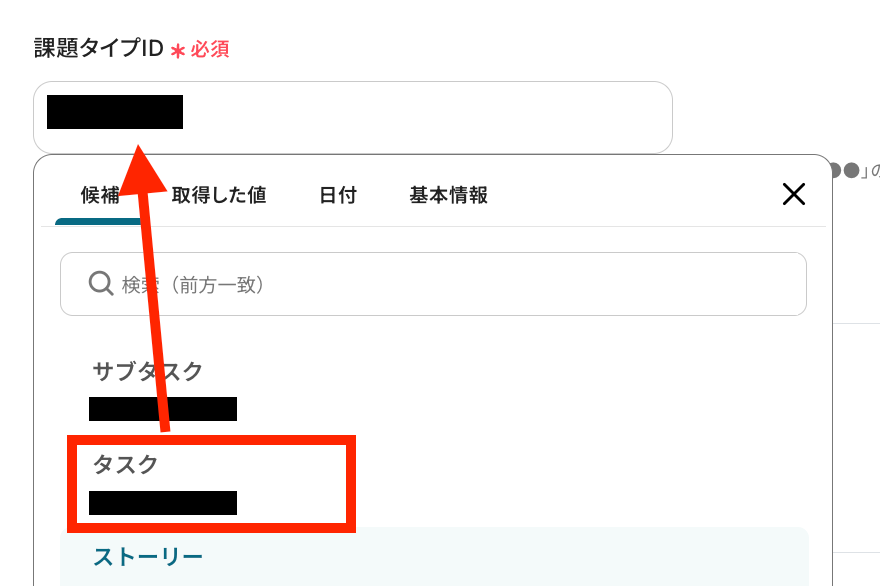 課題タイプIDを候補の中から選択して設定します。