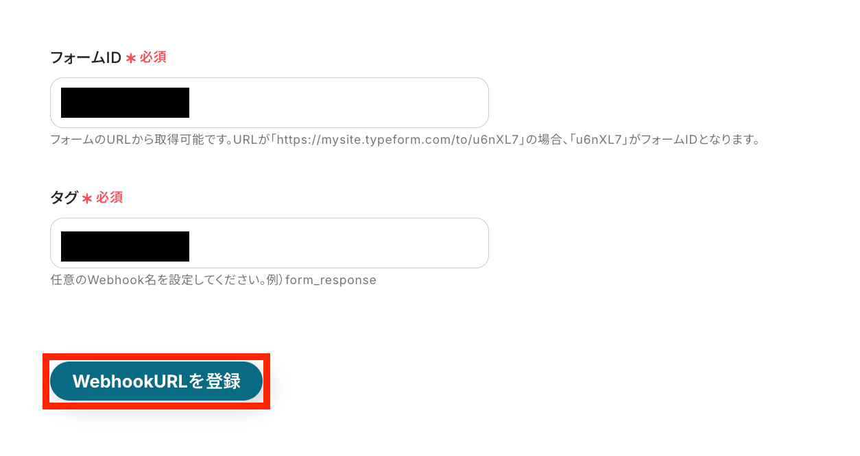 フォームIDとタグを手動で設定して、「Webhook URLを登録」ボタンを押します。