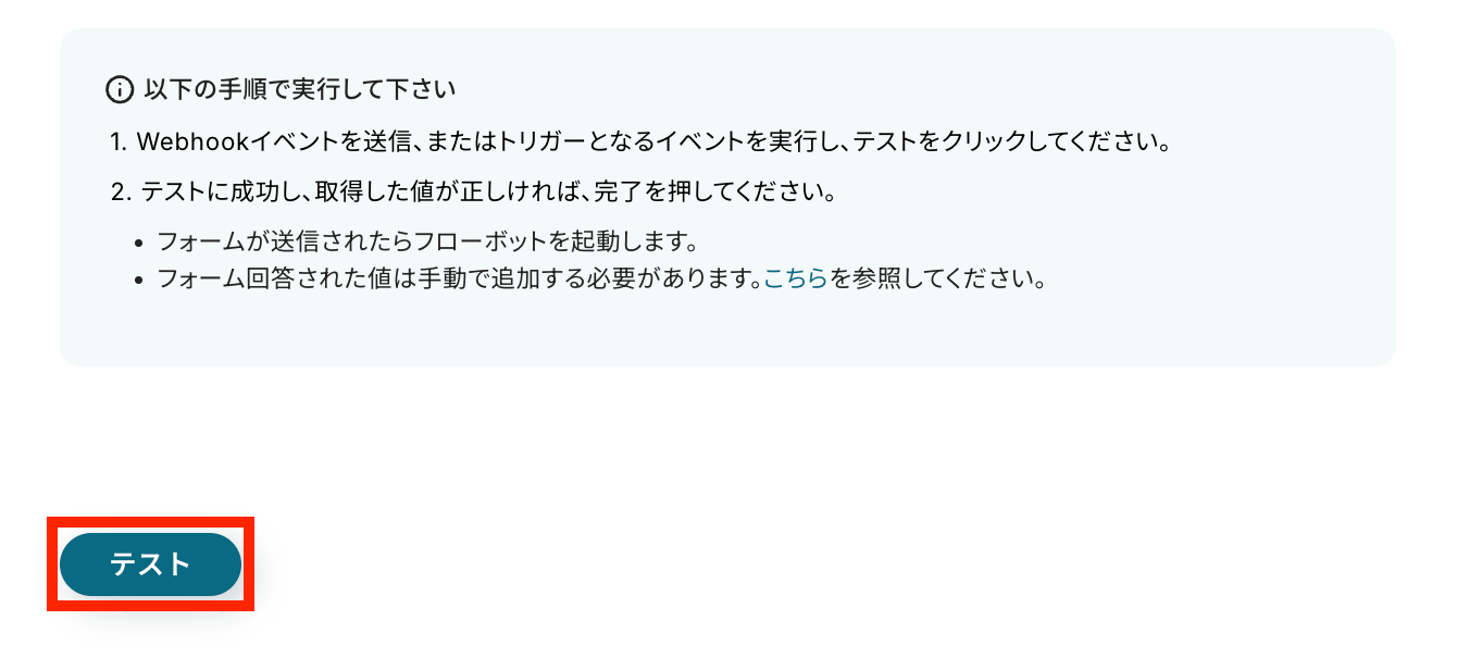 下記のような表示が出たら、WebhookURLが対象のフォームに登録できています。