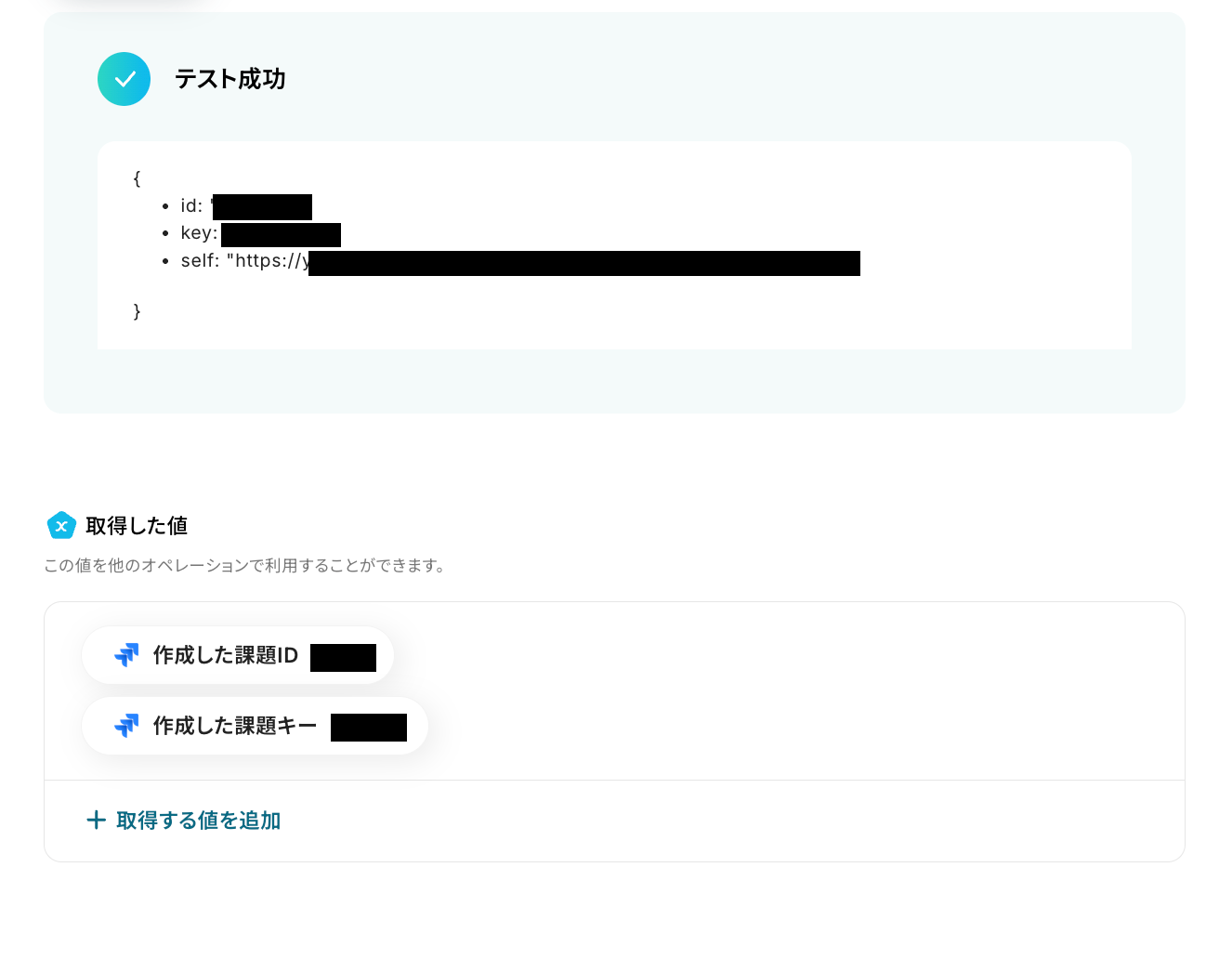 取得した値を用いて、Jira Software上に課題を作成する設定を行います。
