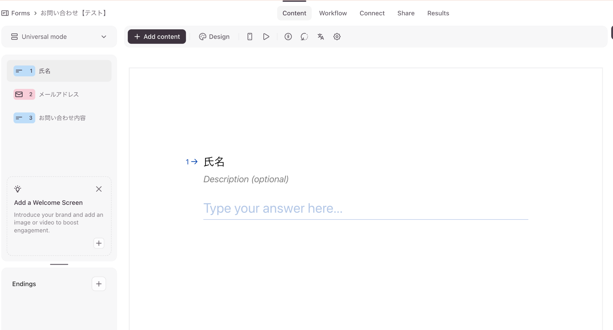 Typeformに登録のある方法でログインします。