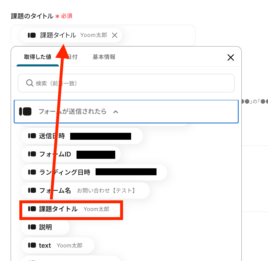 続いて、課題のタイトルを取得した値から選択します。
