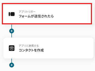 先ほどと同様にタイトルと連携するアカウント情報を任意で設定し、アクションはテンプレート通りに「コンタクトを作成」のまま「次へ」をクリックして進んでください。