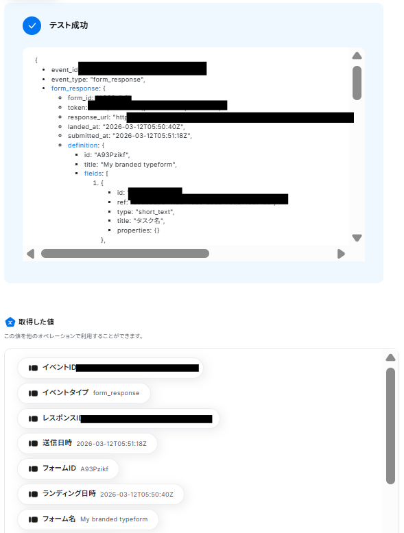 - Typeformの回答内容を取得する方法は「『取得する値』を追加する方法」をご参照ください。