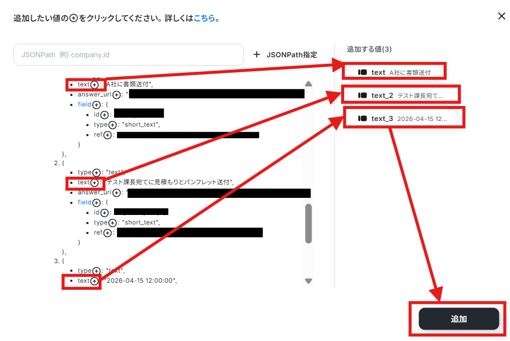 取得した値に追加したい値の「+」ボタンを押して追加ボタンを押します。