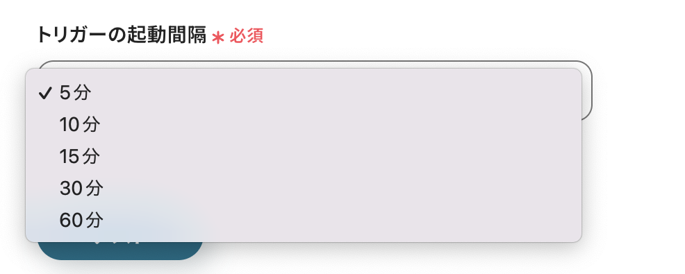 アプリトリガーのAPI接続設定をする 「トリガーの起動間隔」を5分・10分・15分・30分・60分から選択します。 WordPressにコメントが投稿されたら早めにトリガーを起動したい場合は、短い間隔で設定しましょう! ※プラン によって起動間隔の選択内容が異なるため、ご注意ください。