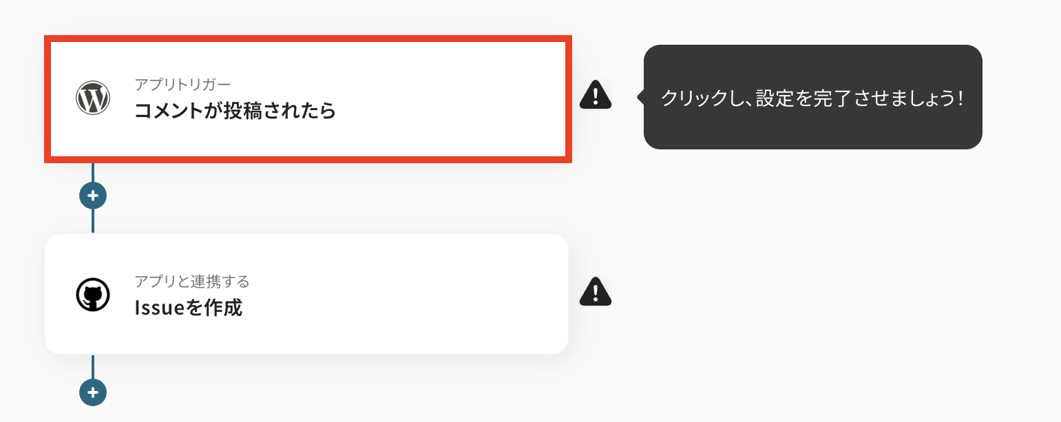 今回は「WordPressでコメントが投稿されたら、GitHubにIssueを作成する 」フローを作成していきます! 作成の流れは大きく分けて以下です。