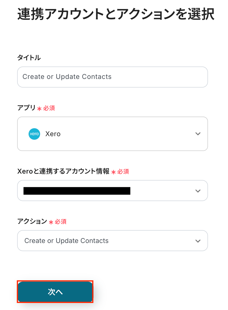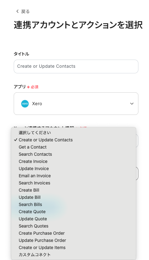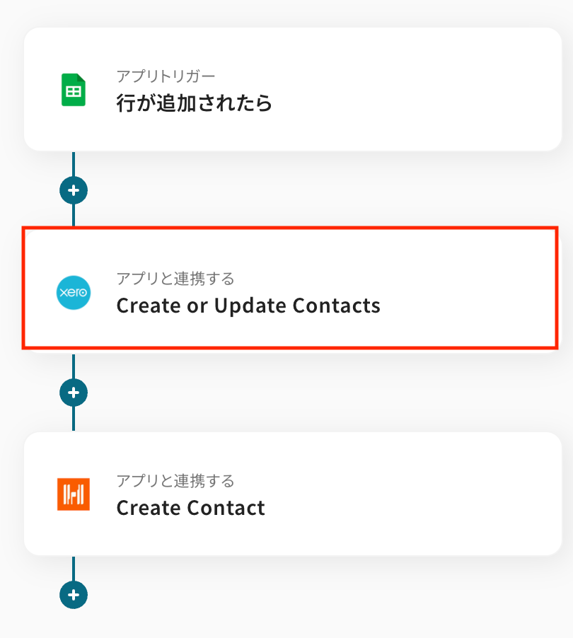 ※Xeroのアクション「Create or Update Contacts」は作成に加えて更新も可能なためそのままでOKです。