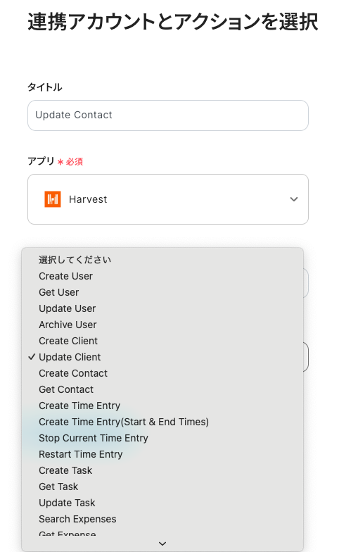 たとえば、Harvest では「請求書(Invoice)の作成・取得・検索」「タスクや経費(Expense)の登録・検索」「プロジェクト関連のタイムエントリー管理」などのアクションが利用できます。