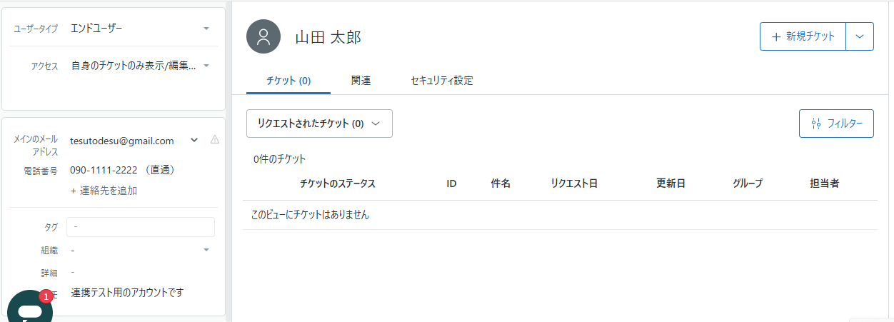 Zendeskにログインし、テスト用のユーザーを新規作成してください。 (架空の設定で問題ありません。) 例として、下記画像のように設定してみました!