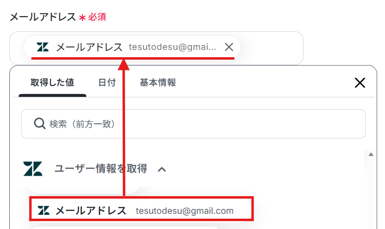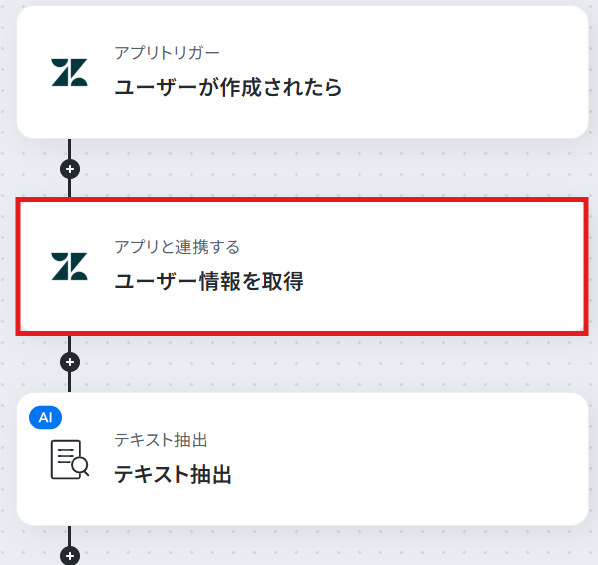ステップ4:Zendeskのユーザー情報を取得するアクションの設定 続いて、「ユーザー情報を取得」という項目をクリックし設定しましょう。