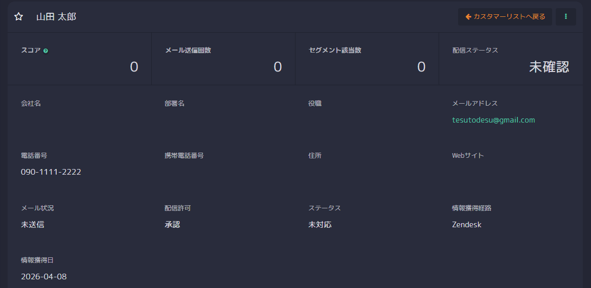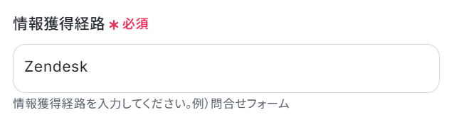 情報獲得経路は、Zendeskの情報を引用しているため「Zendesk」と設定しています。 こちらの項目は、用途に合わせて変更可能です。
