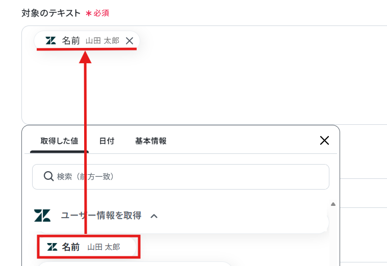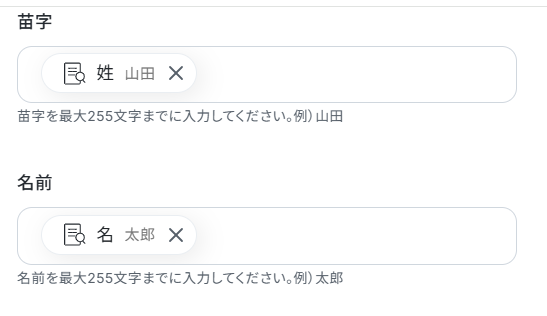 苗字・名前の項目は、抽出したテキストを引用できるように設定されているため確認しましょう。