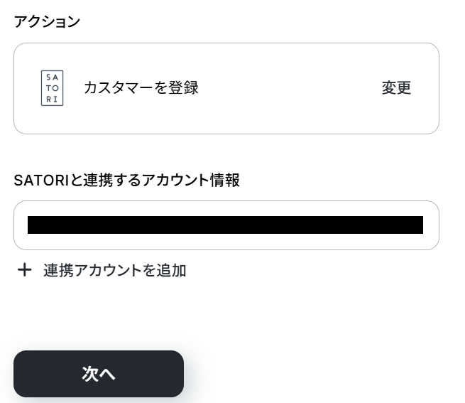 SATORIと連携するアカウント情報を確認したら、次のページに進みましょう。