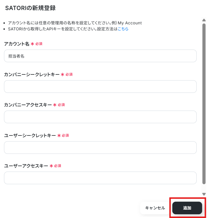 ※各種キーの取得方法については、SATORI公式ページ をご参照ください。