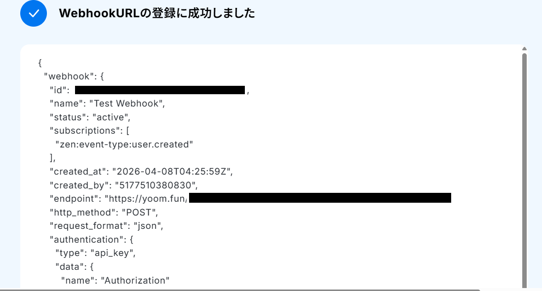 設定できたら、「WebhookURLを登録」ボタンをクリックしましょう。