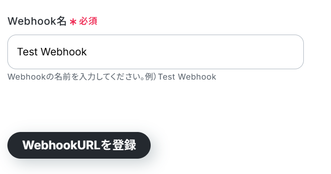 Webhook名は、任意の名前でOKです。 今回は、例として「Test Webhook」と入力しました。