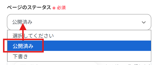 編集欄をクリックし、プルダウンから作成するページのステータスを選択してください。