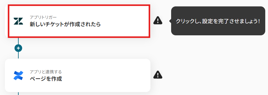 はじめに、ZendeskとConfluenceをYoomと連携します。 次に、トリガーでConfluenceを選択し、「ページが作成されたら」というアクションを設定します。 次に、オペレーションでConfluenceの「ページを取得」アクションを設定し、作成されたページの詳細情報を取得します。 最後に、オペレーションでZendeskの「チケットを作成」アクションを設定し、取得したページ情報を基にチケットを作成します。 ※「トリガー」:フロー起動のきっかけとなるアクション、「オペレーション」:トリガー起動後、フロー内で処理を行うアクション