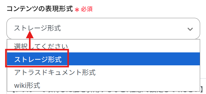 編集欄をクリックし、プルダウンからコンテンツの表示形式を選択します。
