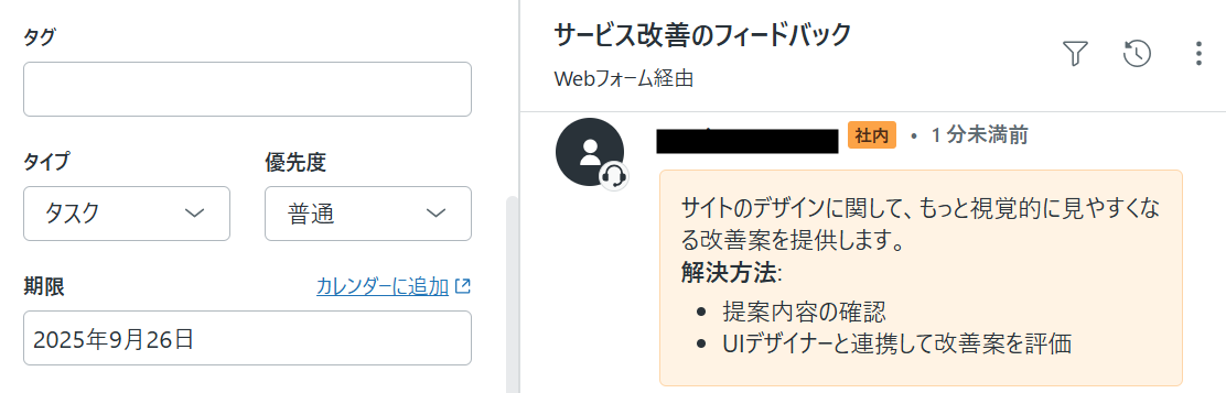 これにより、サポート担当者は問い合わせ対応の履歴を正確にチーム全体で共有でき、開発チームはドキュメントに基づいたタスクを迅速に受け取ることができるようになります。 その結果、部門間の連携がスムーズになり、重要な業務に集中できる環境が整うはずです!