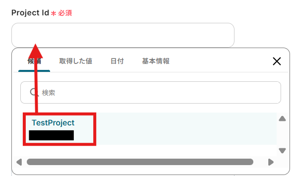 Project Id:プルダウンよりタスクを作成するProjectを選択してください。