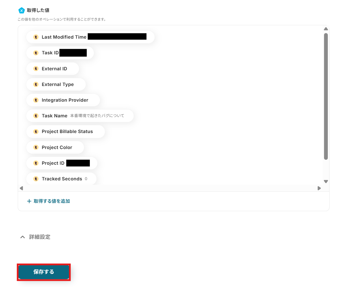 API接続設定画面ではTogglに登録するタスクの詳細内容を設定していきます。