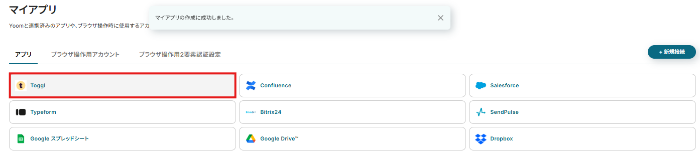 マイアプリにTogglが追加されたことを確認出来たら、Togglのマイアプリ登録は完了となります。