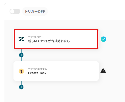 今回はZendeskで新しいチケットが作成されたら、TogglでTaskを作成する フローを作成していきます! 作成の流れは大きく分けて以下です。