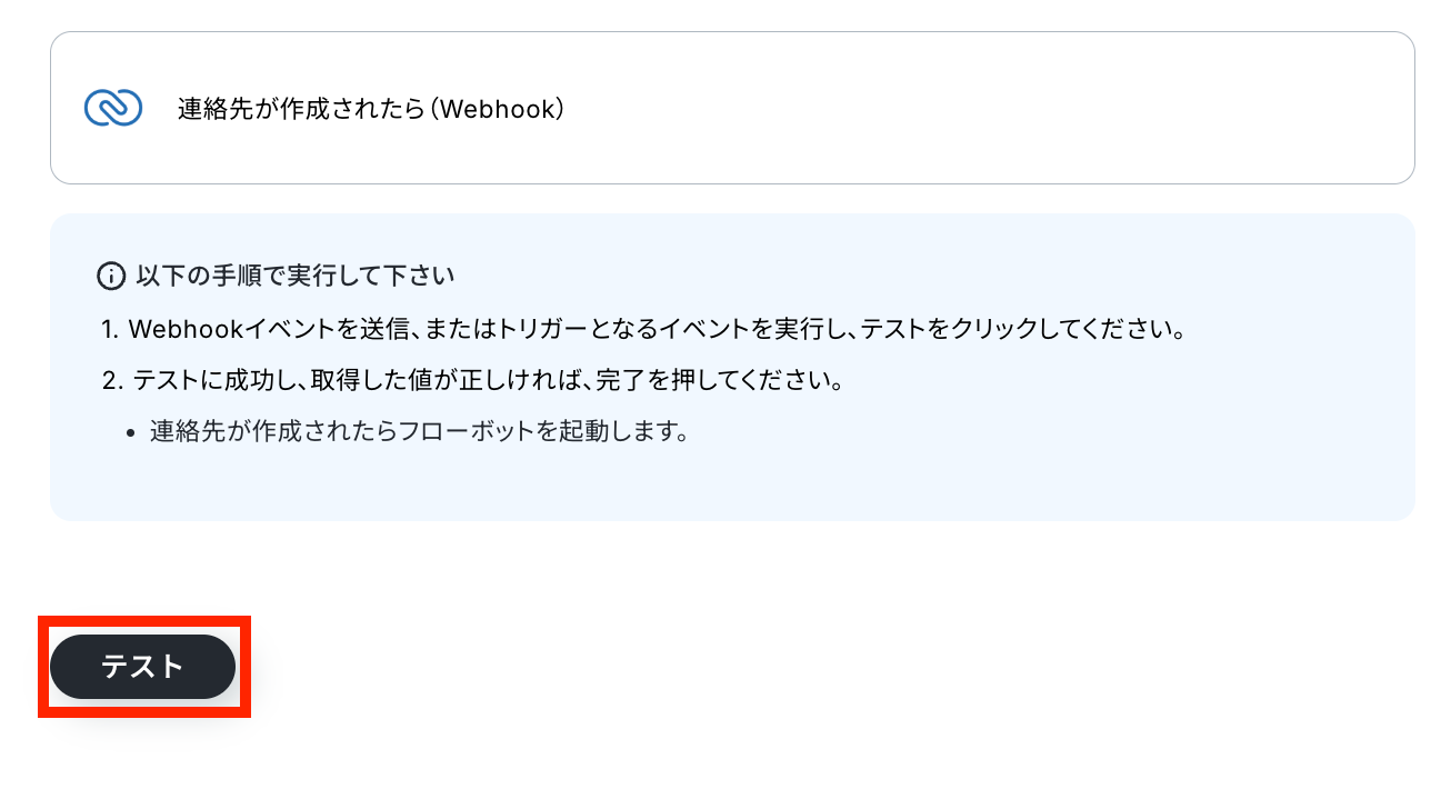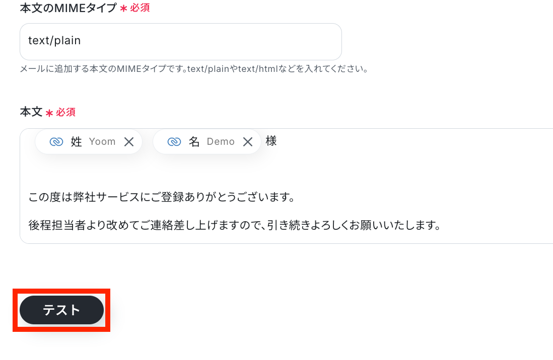 Yoomの設定に戻って、「テスト」をクリックしましょう!