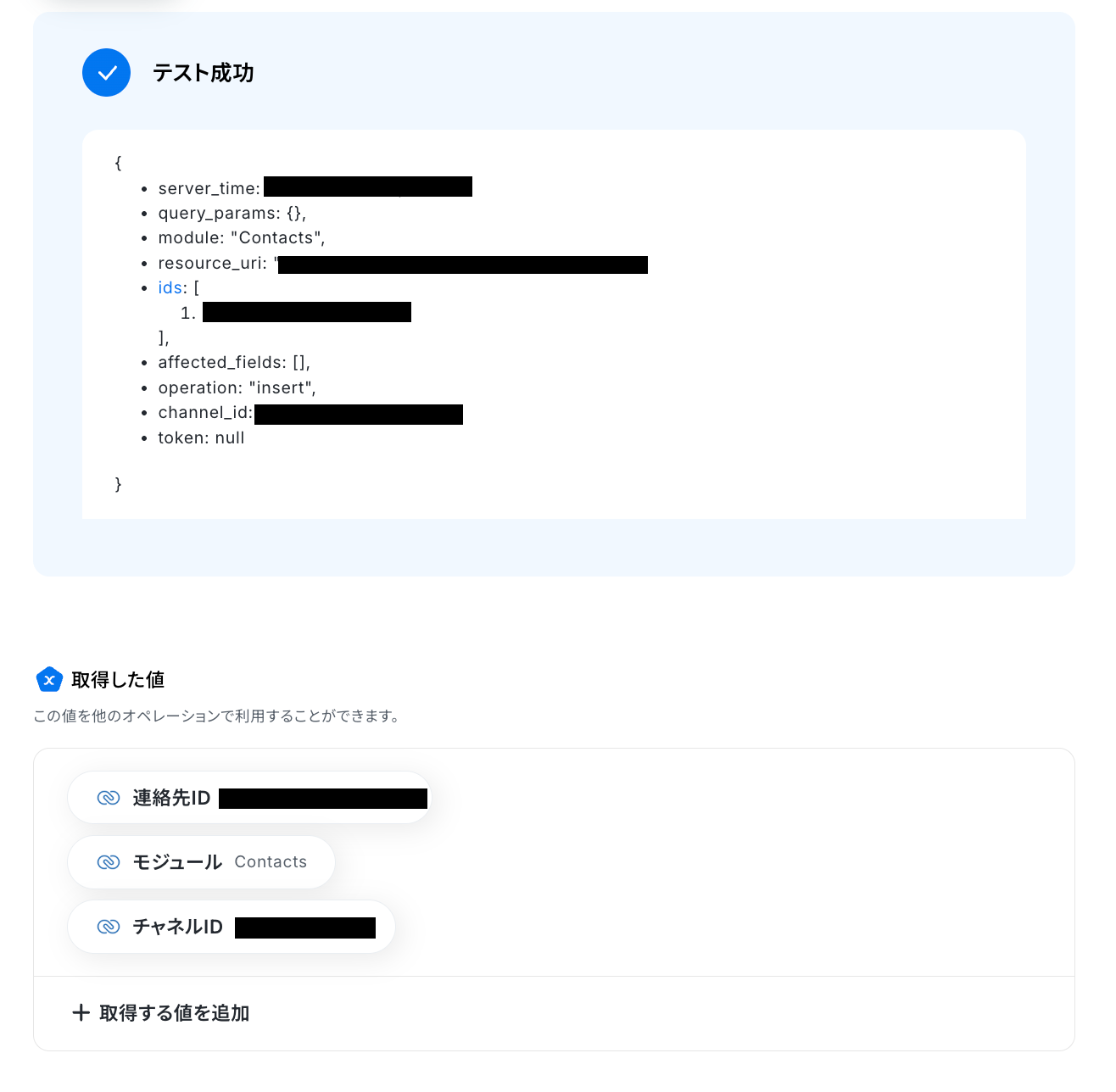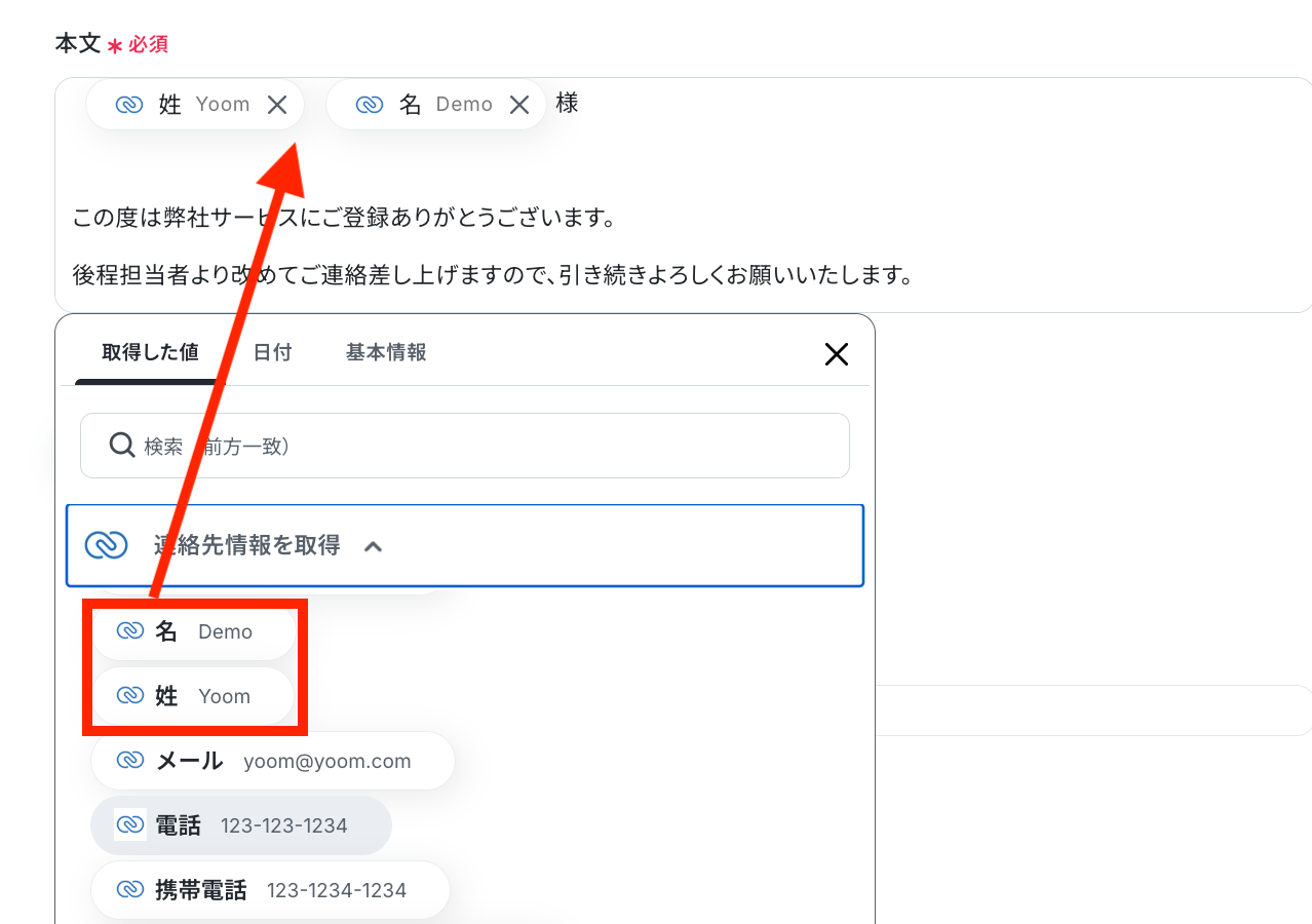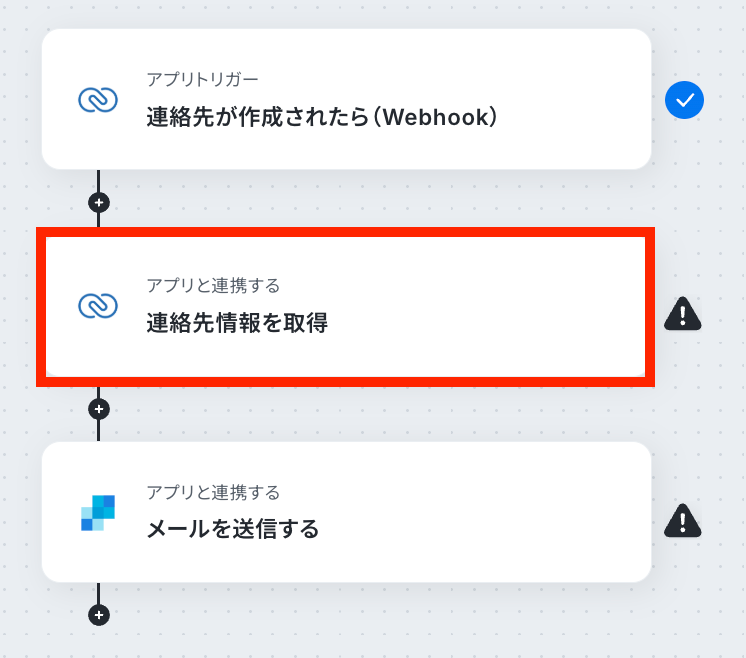 取得した値を利用して、連絡先情報を取得する設定を行います。