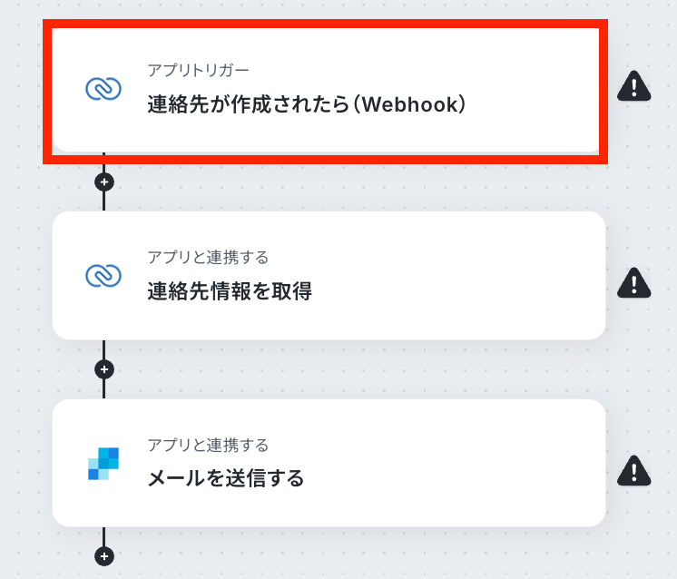 トリガーとなるアプリの設定を行っていきます。最初の赤枠をクリックしてください!
