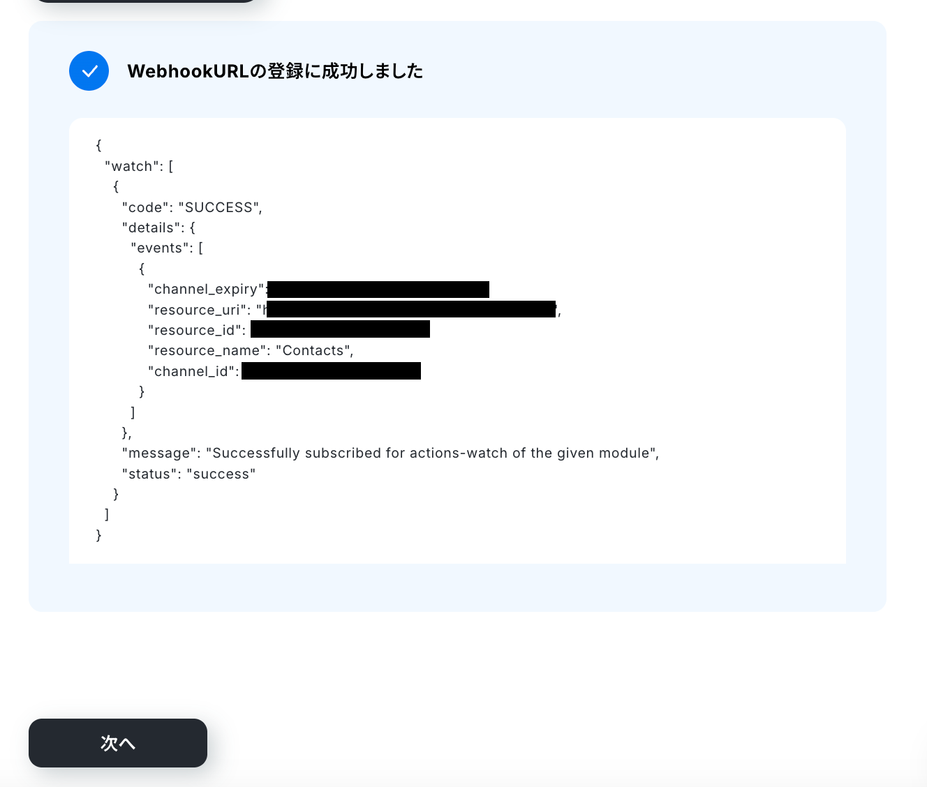 WebhookURLの登録に成功したら、次の設定へ進みます。