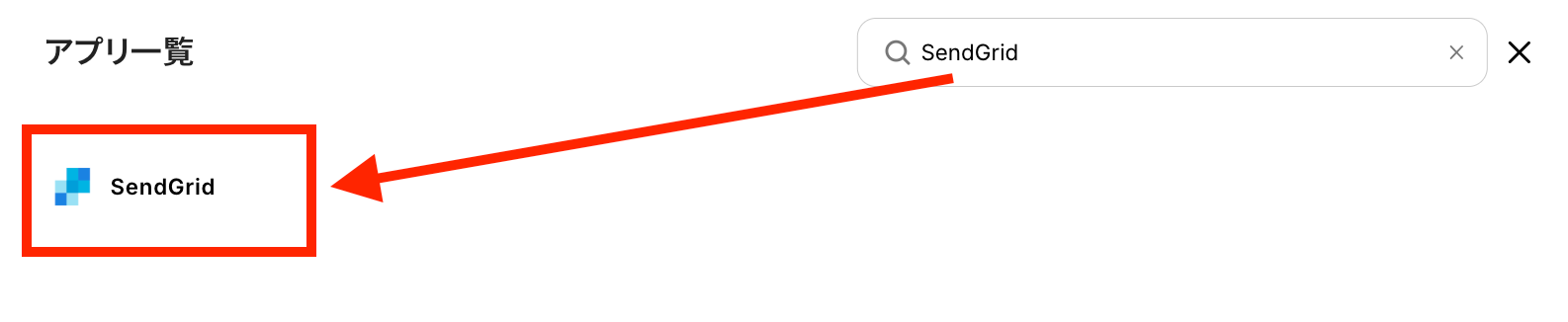 検索欄にSendGridと記入して、表示されたアイコンをクリックします。
