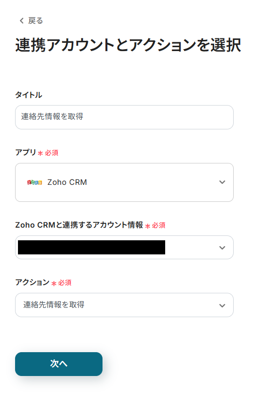 ステップ4:Zoho CRMから連絡先情報を取得する設定