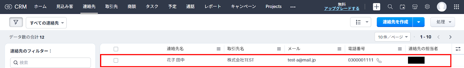 連絡先を作成したらYoomに戻り、テストを行いましょう。